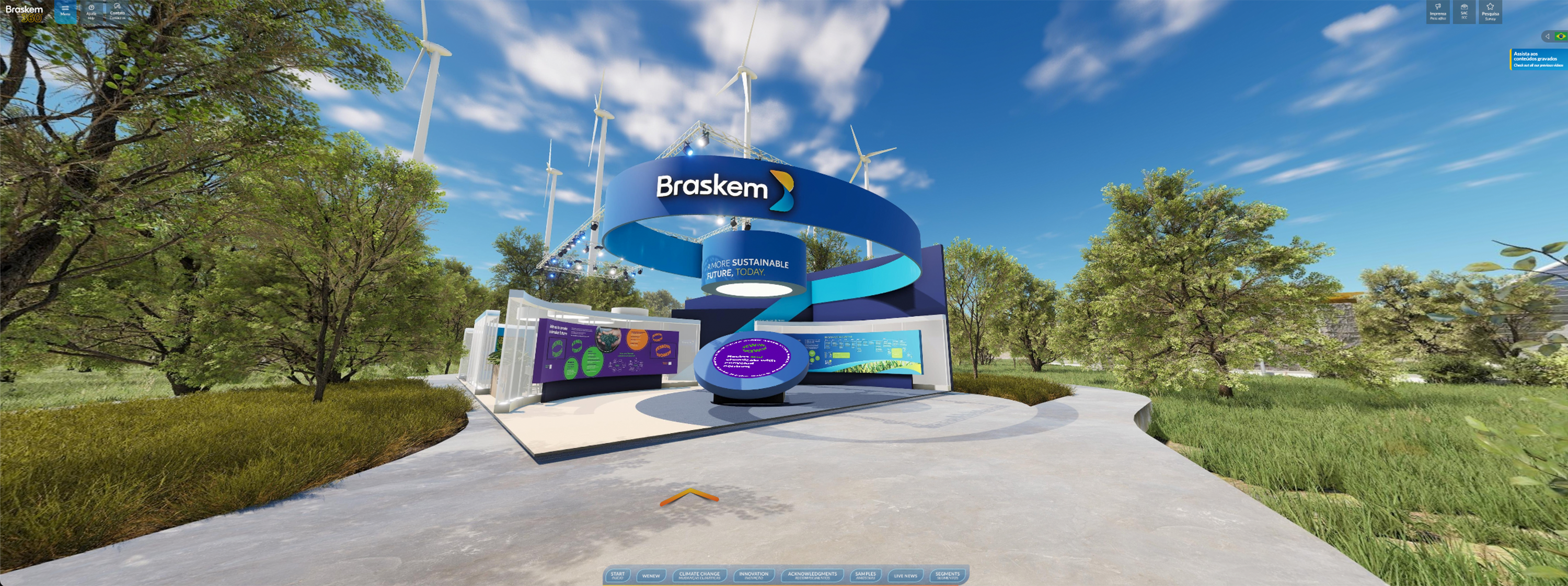 Além de participar do ambiente virtual, a MA&COM foi responsável pelo desenvolvimento de todas as peças de comunicação do projeto em formato bilíngue, em português e inglês. Cada elemento de design foi cuidadosamente planejado para refletir a identidade e os valores da marca Braskem, garantindo uma representação visual que reafirma sua essência e presença no mercado. Esse compromisso com a identidade da empresa enriqueceu ainda mais a experiência no metaverso, fortalecendo a conexão entre a Braskem, seus clientes e parceiros em um contexto digital inovador.