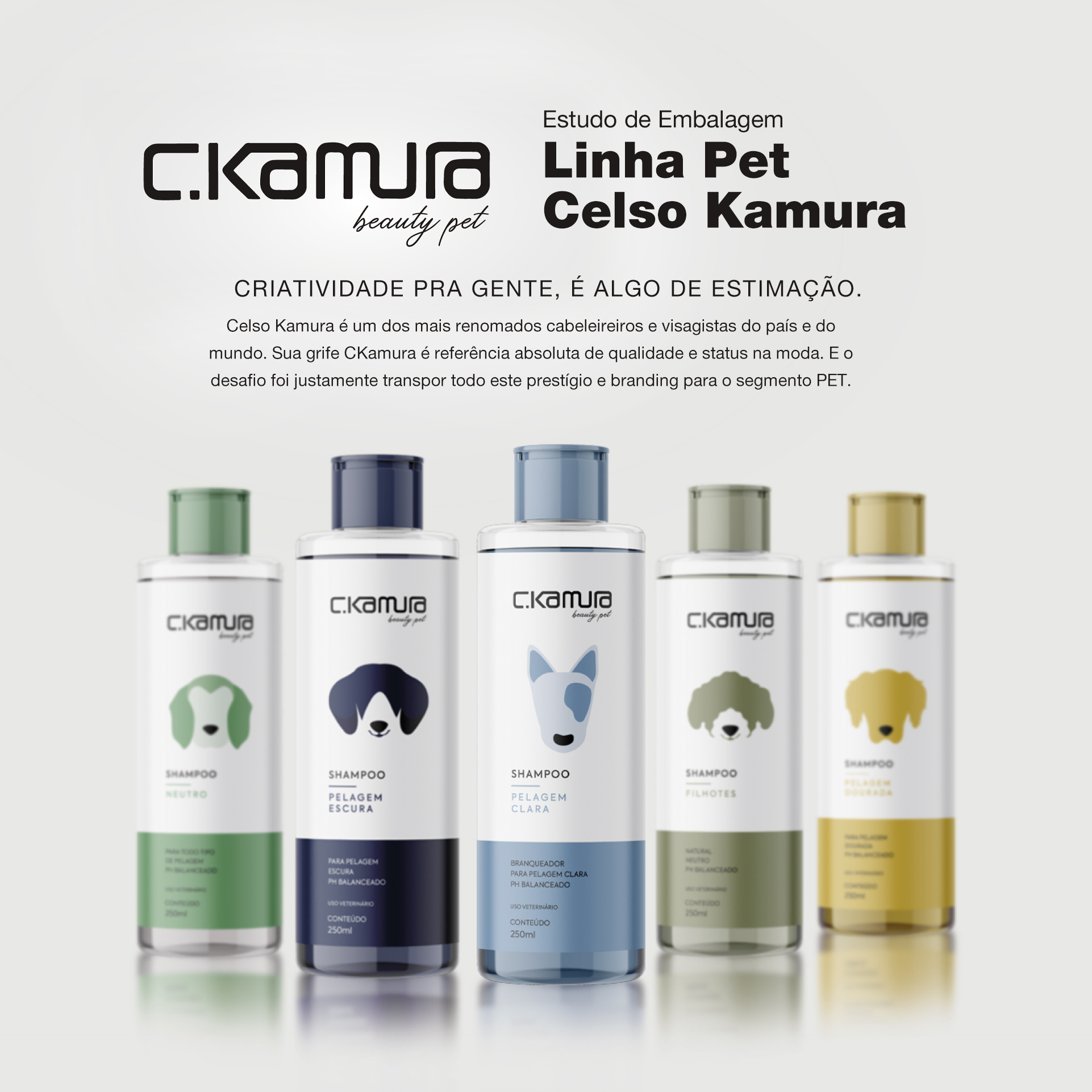 Celso Kamura é um dos mais renomados cabeleireiros e visagistas do país e do mundo. Sua grife CKamura é referência absoluta de qualidade e status na moda. E o desafio foi justamente transpor todo este prestígio e branding para o segmento PET. Neste sentido, foram criados nomes para os produtos e linhas e todo o desenvolvimento de embalagens que por si só, já têm o charme e glamour dos pets estampado, aumentando assim a atração nos pontos de venda. A sequência da campanha já está programada com anúncios e cartazes que mostram os cães no estilo dos donos, de forma bem divertida e bem-humorada.